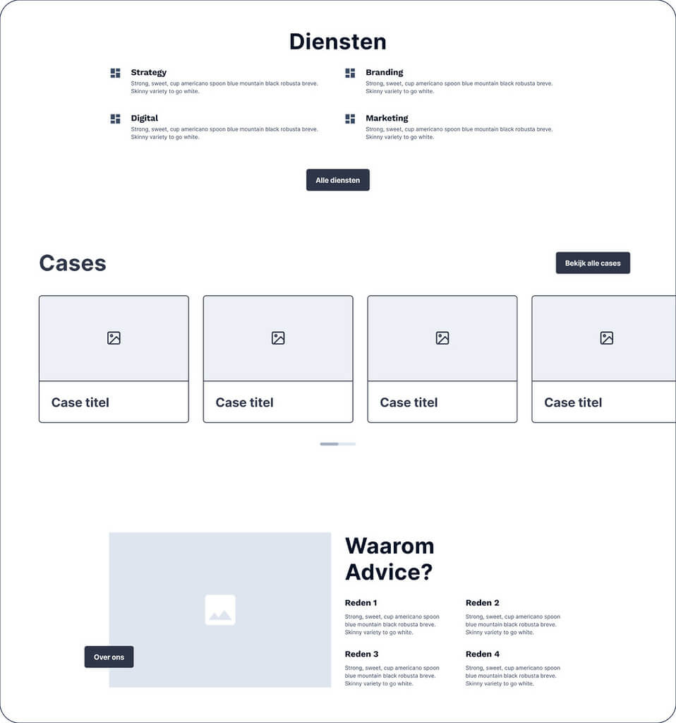 - Eerder in het proces feedback te verzamelen: Door wireframes te presenteren voordat het visuele ontwerp start, voorkom je dat je later dure en tijdrovende aanpassingen moet doen.